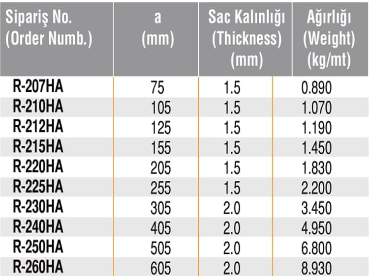 • Farklı kalınlık ve ölçülerdeki siparişleriniz için firmamızı arayınız.