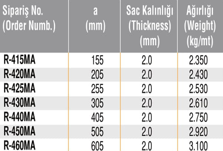 • Farklı kalınlık ve ölçülerdeki siparişleriniz için firmamızı arayınız.