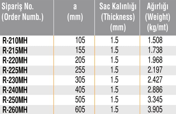 • Farklı kalınlık ve ölçülerdeki siparişleriniz için firmamızı arayınız.